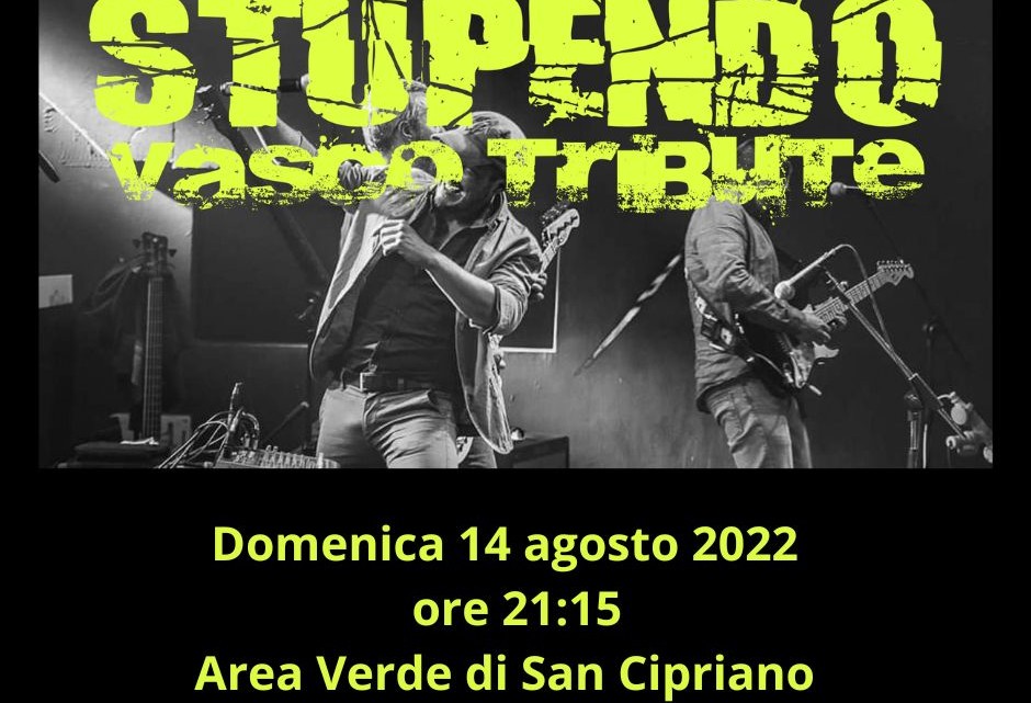 Per motivi organizzativi, lo “STUPENDO VASCO” TRIBUT in concerto, previsto per Mercoledì 24 agosto 2022, verrà anticipato a Domenica 14 agosto 2022 alle ore 21:15 presso l’Area Verde di San Cipriano.